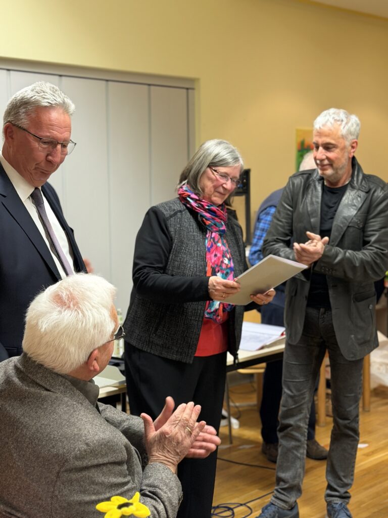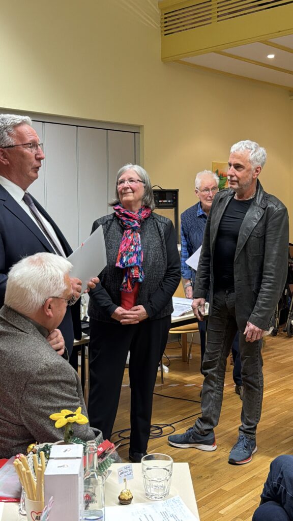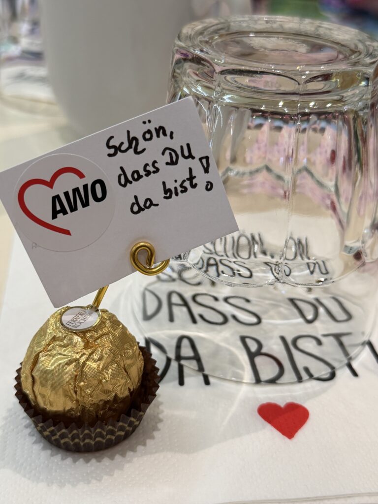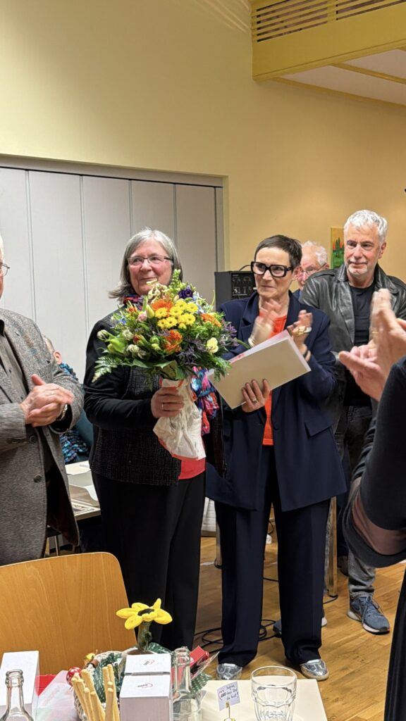 Mit Standing Ovations und lang anhaltendem Applaus verabschiedeten die Anwesenden Karin Schäfer und dankten ihr für ihr Herzblut, ihre Ausdauer und ihre Menschlichkeit. Auch Kooperationspartner vor Ort schlossen sich dem Dank an, darunter Regina Müller-Hinz von psychosozialen Arbeitsgemeinschaft, Oxana Haffner im Namen der AWO Migrationsdienste und des Vereins der schönen Künste sowie Kornelia Finke, Einrichtungsleitung der AWO‑Kitas Traumland und Sonnenblume.