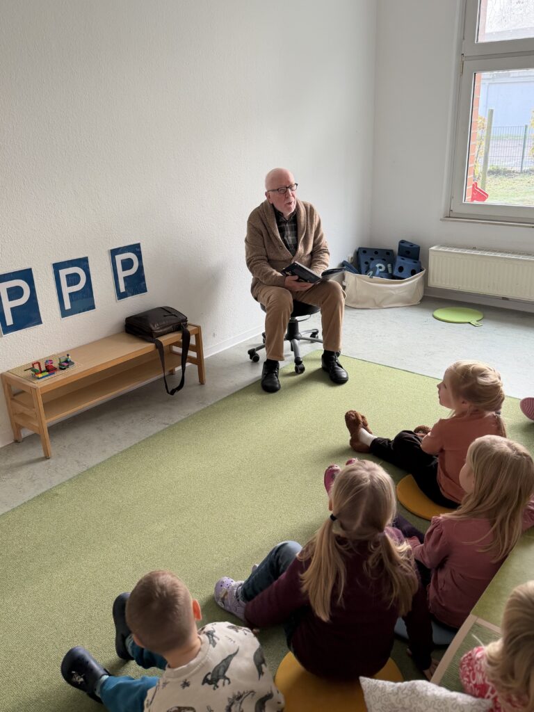 Der Ehrenvorsitzende der AWO RLE, Wolfram Kuschke, hat den Kindern aus der Kita Pusteblume vorgelesen. Für ihn ist dieses Thema eine Herzensangelegenheit, weshalb er es sich nicht nehmen ließ vorbeizuschauen.