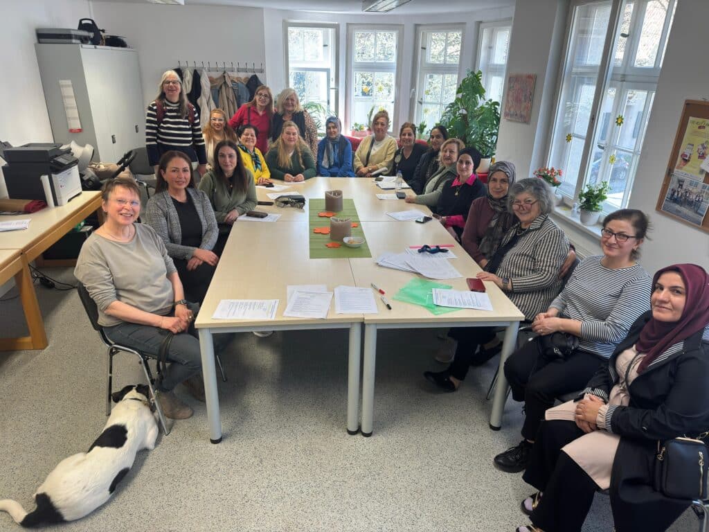 Und nachdem das erste Kursthema so positiv aufgenommen wurde, kamen nun noch mehr Interessierte im Glückaufheim zusammen, um sich über die Fortbildung zur Begleitung von Senior*innen und Menschen mit Demenz zu informieren und auch gleich dafür anzumelden. Der Kurs startet am 23. April 2026 als Fortbildungsreihe. Das Angebot richtet sich an Personen mit Migrationsgeschichte und findet je dienstags und donnerstags bis zum 28. Mai im Glückaufheim statt.
