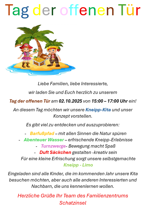 Durch die Kooperation mit dem Kneipp Verbund und dem Kneipp Verein Unna e.V. gibt es immer wieder neue Kurse, Eindrücke und Möglichkeiten der Eltern- oder Eltern-Kinder-Kurse.